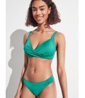 Bikini capacidad sin aros y con foam en tejido de estructura. Detalle de cruce en escote que estiliza la prenda. Braguita bikini clásica en tejido de estructura