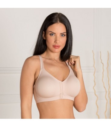 Sujetador preformado sin aros ni foam, diseñado para máxima comodidad y funcionalidad. Con apertura frontal, está confeccionado en tejido compuesto por 90% algodón y 10% lycra, ofreciendo suavidad y elasticidad. El modelo incluye doble refuerzo en las copas y la espalda para mayor soporte y durabilidad. Los tirantes son ajustables y cuenta con una corchetera de cuatro posiciones que garantiza un ajuste perfecto. Fabricado por Morante, marca española comprometida con la calidad y la excelencia..