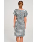 Vestido estampado de mujer Rasdemar, con elegante cuello pico y frunce en el pecho que realza la figura. Diseño con manga mariposa, ligera y femenina, ideal para un look fresco y cómodo. Perfecto para el verano, combina estilo y confort en una prenda versátil. Fabricado en España