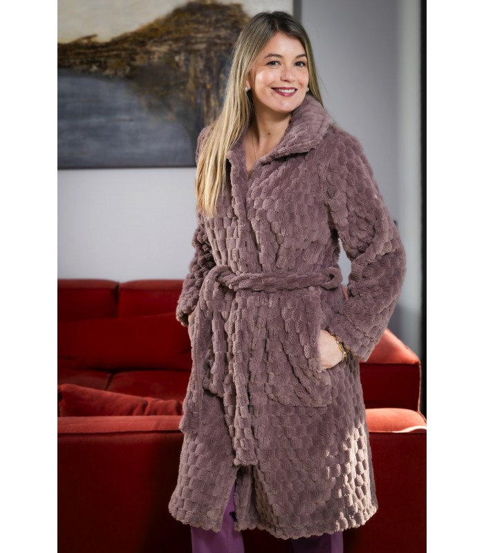 Bata larga abotonada y con cinturón para poder cruzarla de la marca Privata, una prenda indispensable para tu armario. Confeccionada en un tejido de tacto suave y agradable, presenta un bonito estampado en tonos azules que aporta elegancia y estilo. Su diseño incluye prácticos bolsillos laterales y cinturón para ajustarla cómodamente al cuerpo. Ideal para disfrutar de momentos de relax en casa con calidez y confort. Un clásico atemporal que combina funcionalidad y sofisticación, perfecto para sentirse cómoda y abrigada sin renunciar a un toque de distinción en los días más fríos.
