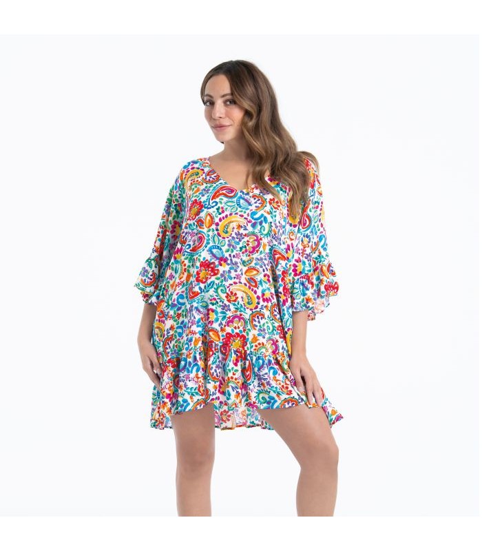 Akalani es el vestido veraniego perfecto de Anita Rosa Faia. Confeccionado en un tejido de caída suave y ligera, destaca por su favorecedor escote de pico pronunciado y los delicados volantes en el dobladillo y las mangas, que aportan movimiento y un aire femenino. Su corte holgado garantiza máxima comodidad sin renunciar a un estilo moderno y actual. Es una prenda versátil que puede combinarse fácilmente: con sandalias o zapatillas deportivas para un look casual, o con tacones y accesorios para un outfit de noche más sofisticado. Un vestido imprescindible que querrá llevar una y otra vez durante toda la temporada.